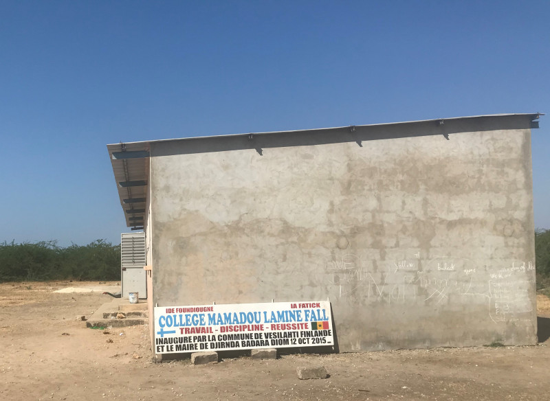 Un peu secoués par la houle sur le grand bolong, on accoste sur l'île de DIAMNIADIO. Acccueillis par Oussénou et l'adjoint au maire, nous nous rendons chez le chef du village où, en compagnie de quelques anciens, Oussénou explique le projet de coopérative Sénékoppe. Le collège sera opérationnel à la prochaine rentrée scolaire. C'est au total environ 500 élèves qui pourraient venir se servir à la coopérative.